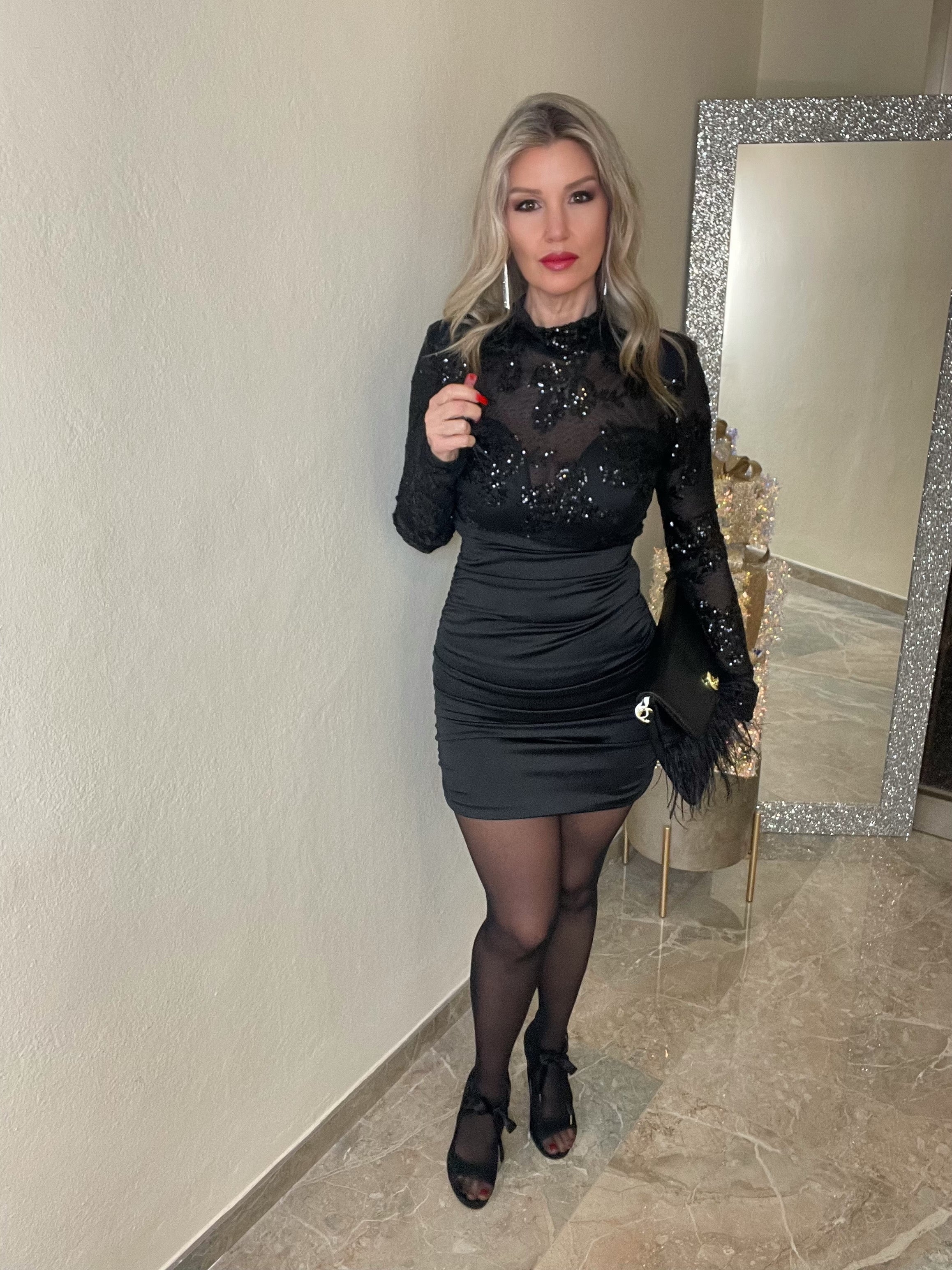 "Esplora la tua sensualità con l'abito Temptation. Realizzato in raso elasticizzato e tulle con pizzo, offre una vestibilità perfetta grazie ai drappeggi e alla chiusura con lampo sul retro. Taglia unica fino alla 44/46. Sentiti sicura e affascinante in ogni occasione."