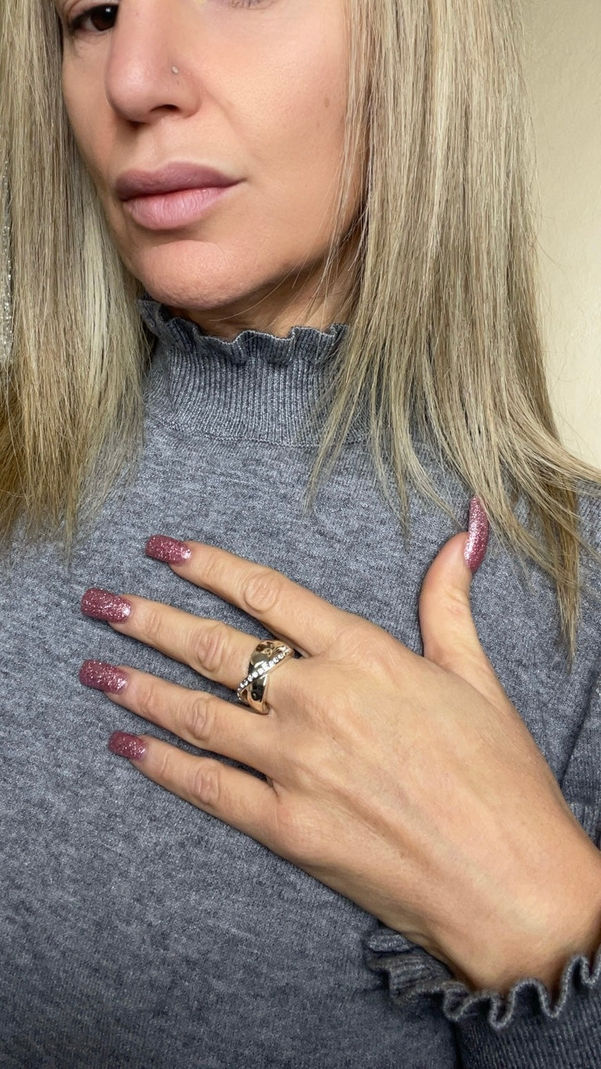 L'Anello Gia è un gioiello incantevole, con un design incrociato che cattura lo sguardo e brillantini che lo rendono ancora più luminoso. La sua taglia unica, adattabile, lo rende perfetto per ogni dito, offrendo comodità e stile. Porta un tocco di eleganza ad ogni look con l'Anello Già color silver.