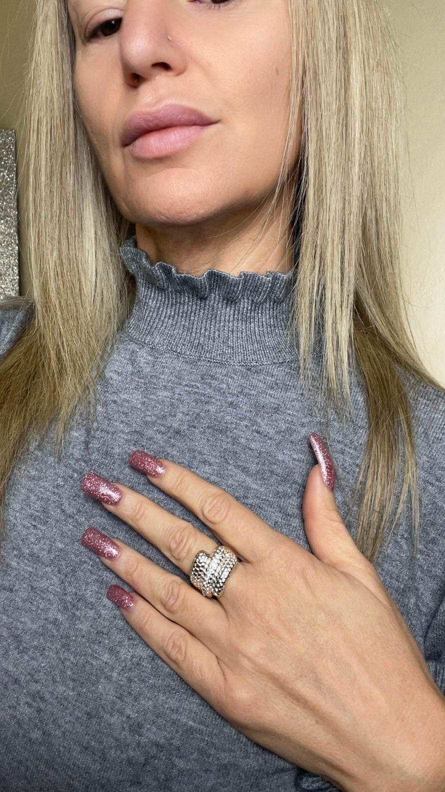 L'Anello Violet ha un design elegante e moderno, con una finitura color argento. È regolabile per adattarsi a qualsiasi dimensione di dito. Aggiungi un tocco di stile al tuo look con questo anello versatile. Perfetto per completare il tuo outfit per qualsiasi occasione.