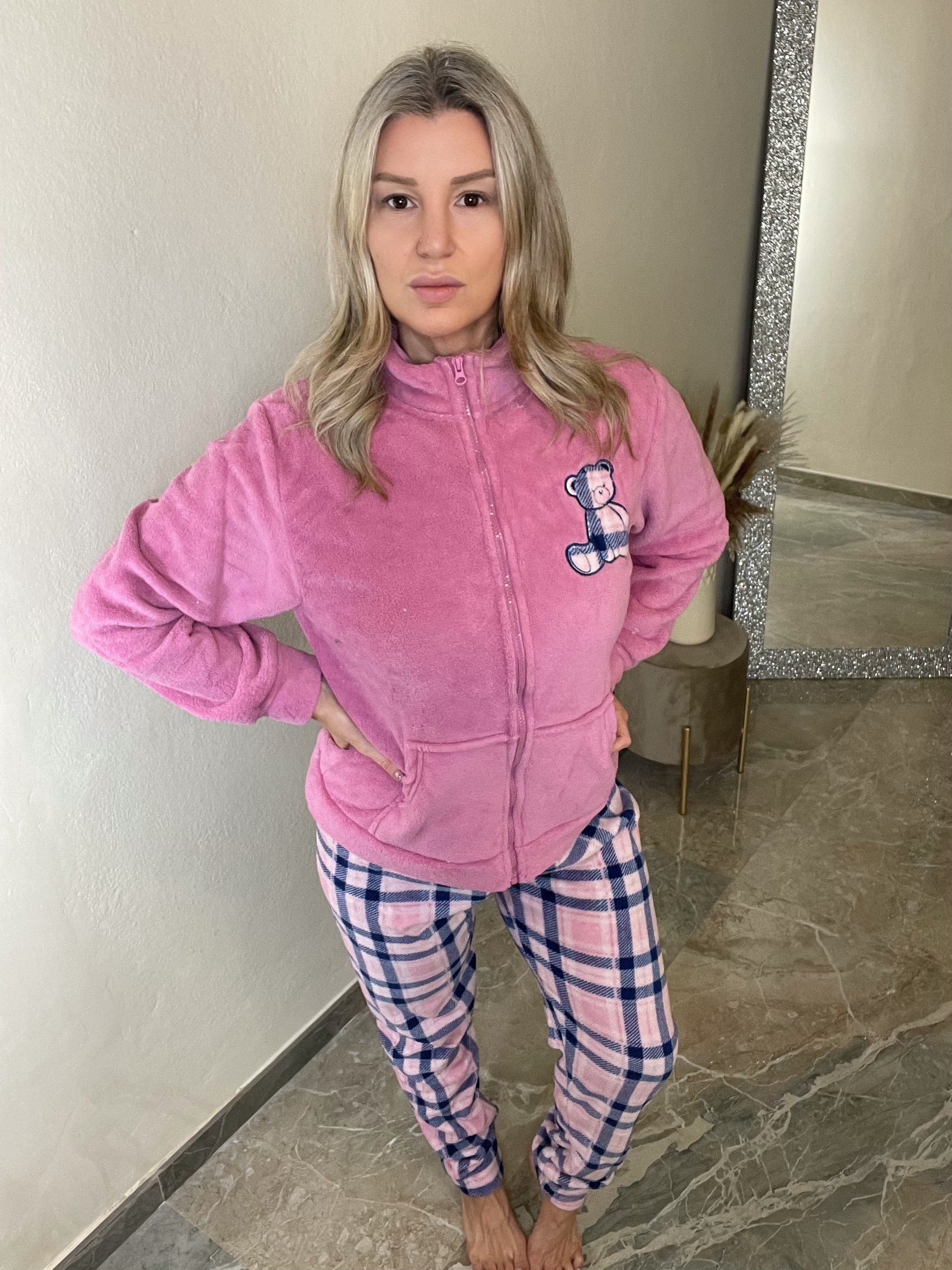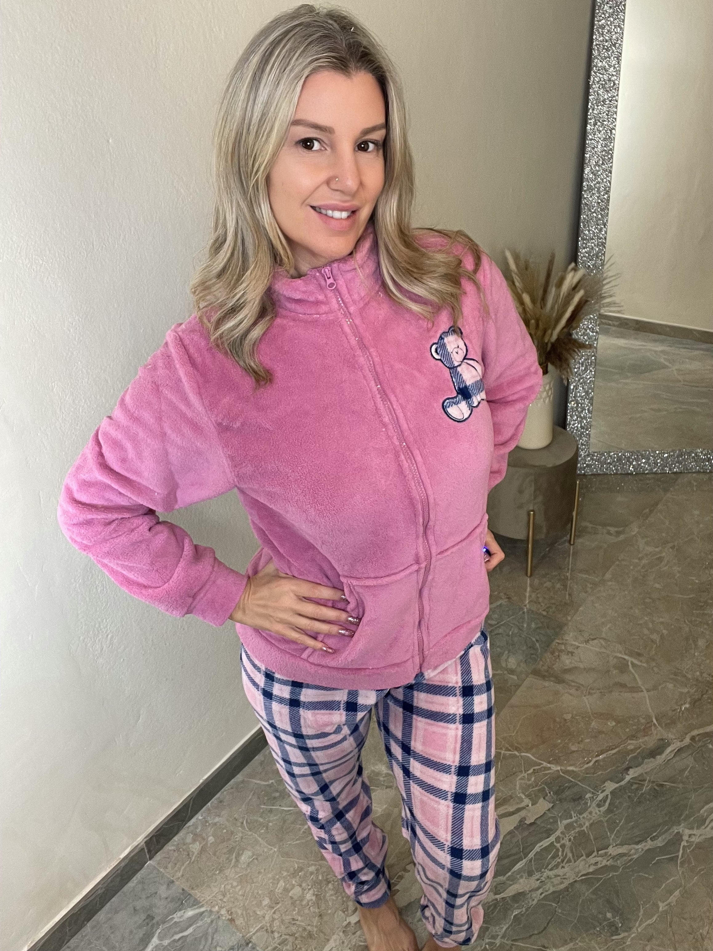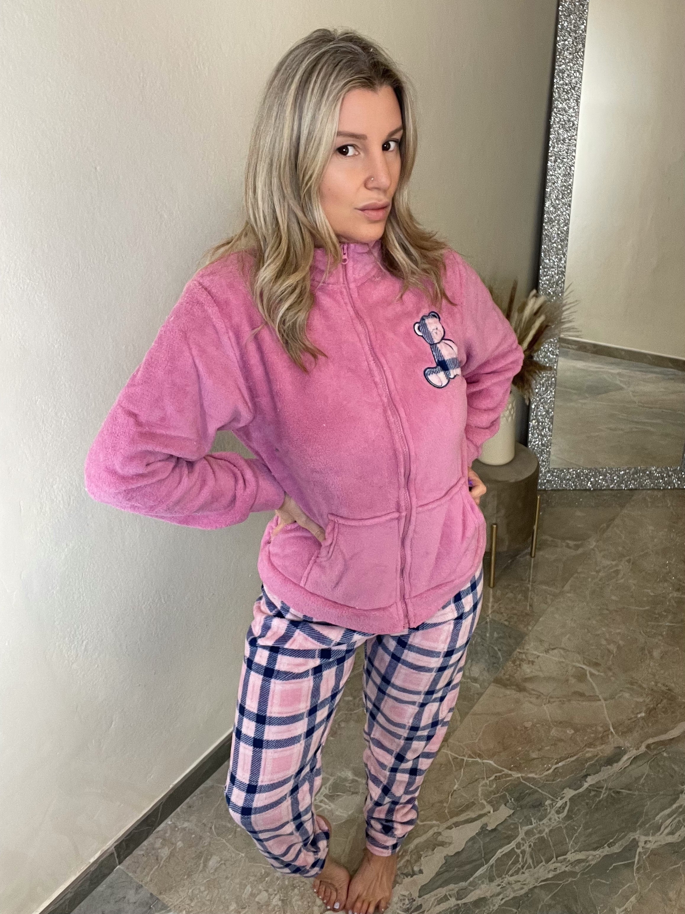 Prova il massimo comfort con il Pigiama Nensy. Realizzato con tessuto coral caldissimo, è perfetto per passare la giornata a casa. Pratico allacciatura con lampo sul davanti e polsini sulle maniche e pantaloni, per un fit perfetto. Ideale per coccolarti durante le giornate fredde.